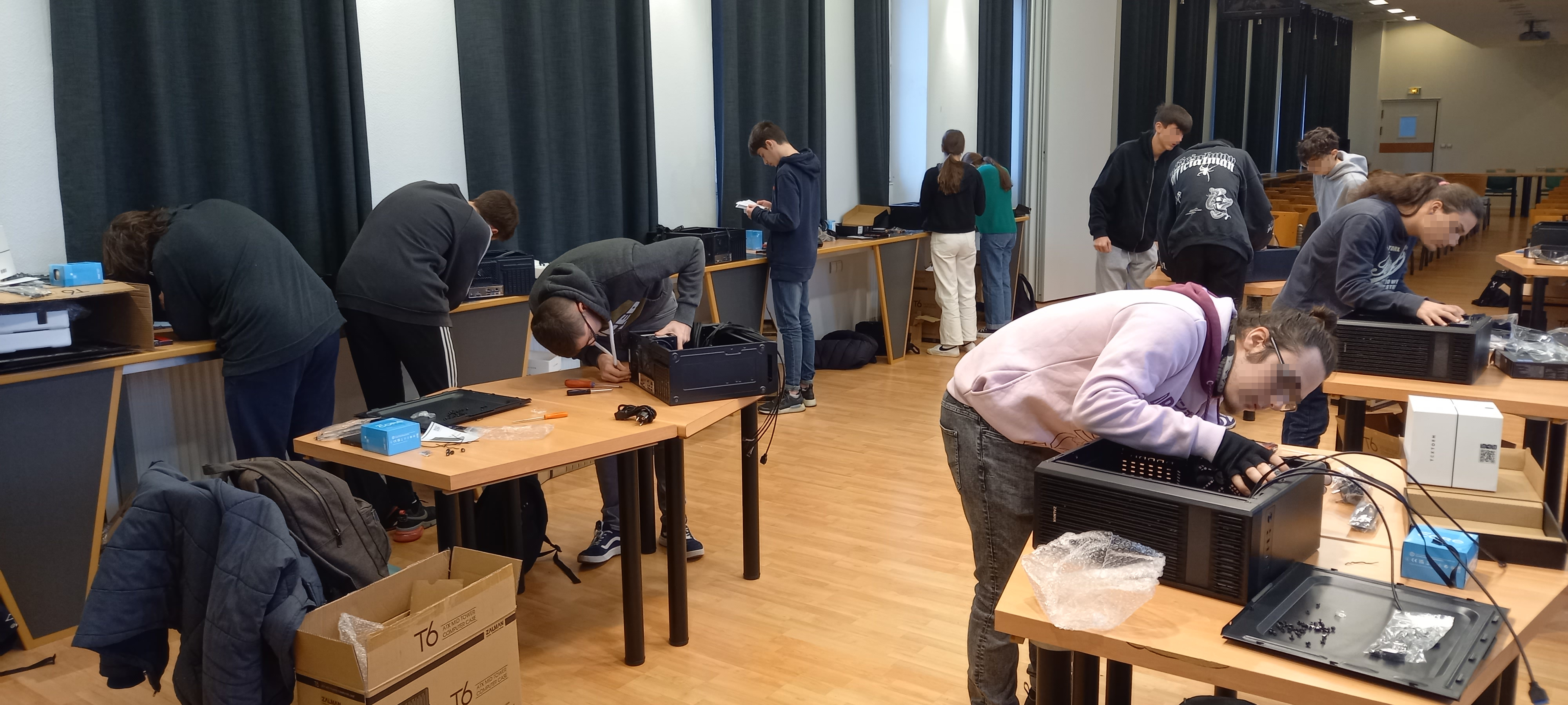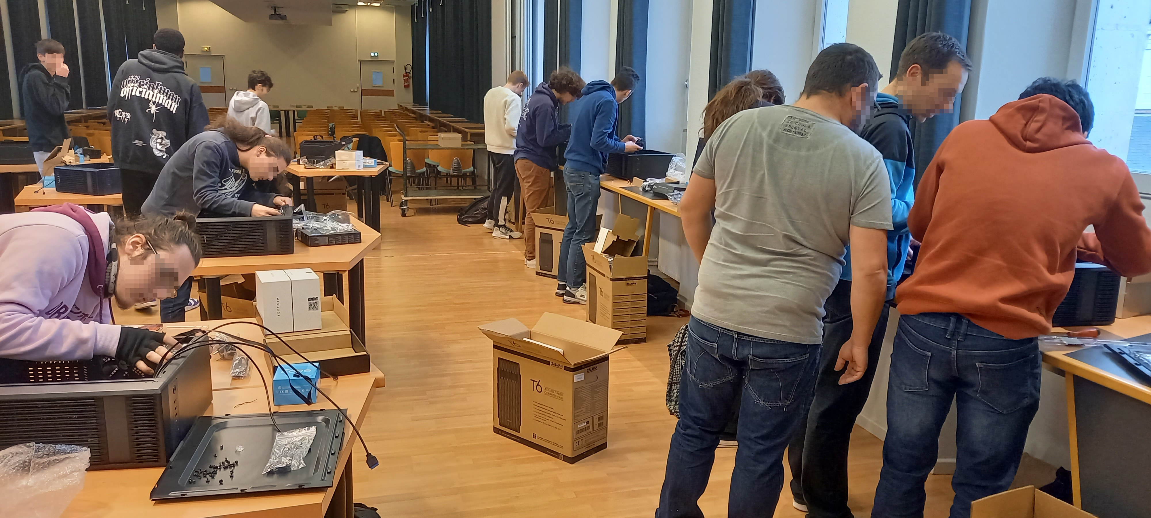 Atelier réalisé en janvier 2023 avec les informaticiens du lycée : chaque élève de Terminale NSI monte son PC